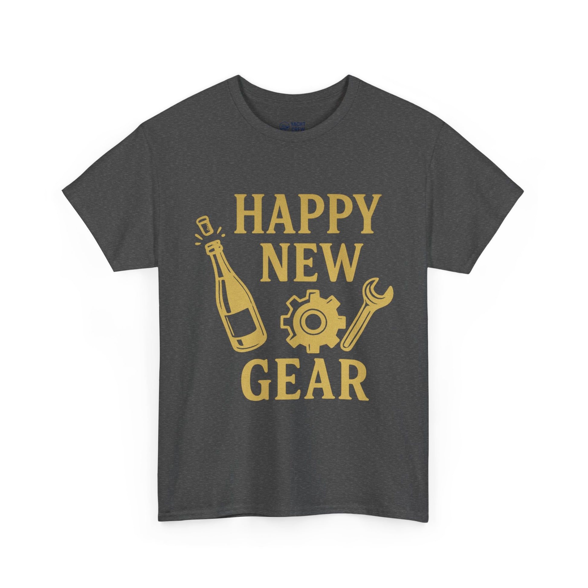 Celebrate new workshops, promotions, or milestones with a casual tee that speaks the language of makers and gearheads. This classic crew shirt carries a bold, single-color print: a toast-worthy champagne bottle, a cog, and a wrench framed around the phrase “HAPPY NEW GEAR.” It sits relaxed on the body, easy to layer under a flannel or wear solo while you tune, build, or celebrate. Lightweight but durable cotton holds the print crisp and clean through repeat wears and washes. Slip it on for shop open houses, launch nights, or weekends spent upgrading tools — it feels like the small, joyful ritual of unboxing something you’ve been saving up for.
