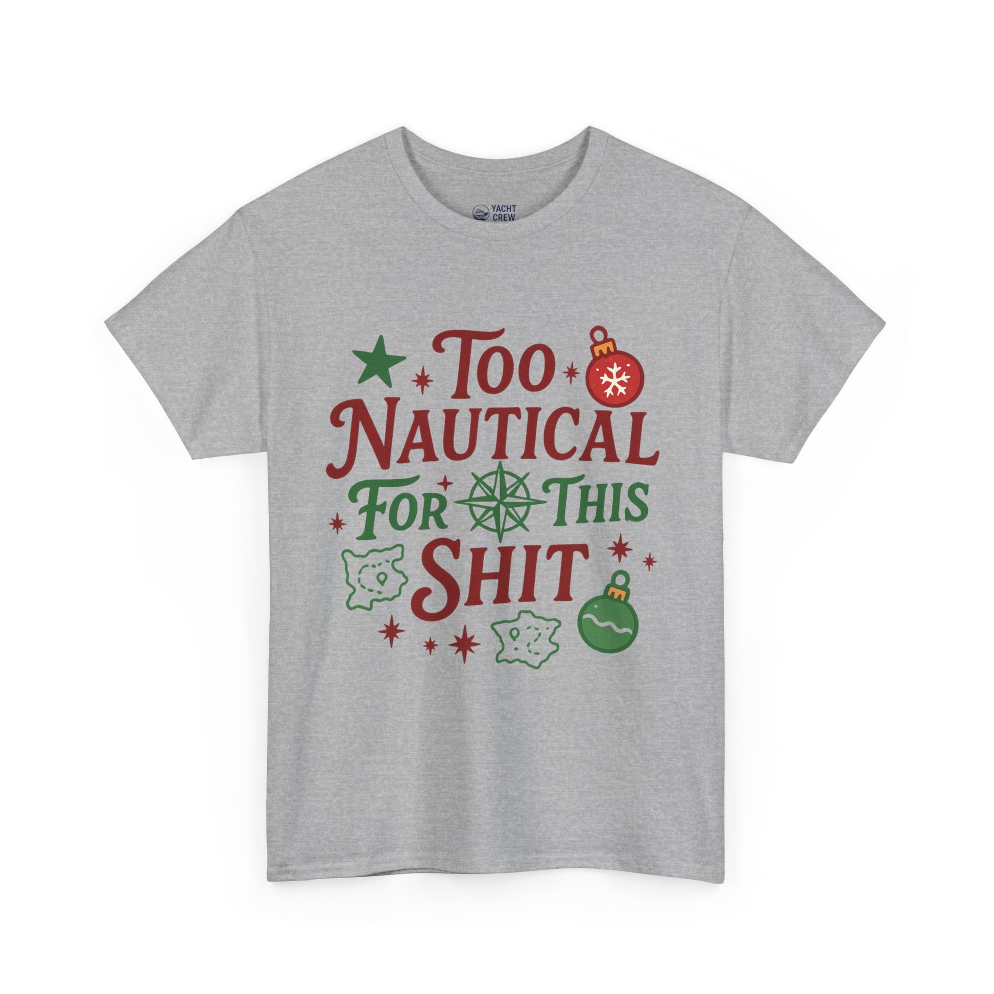 Nautical Holiday Tee — "Too Nautical for This Shit" Funny Christmas Beach Shirt